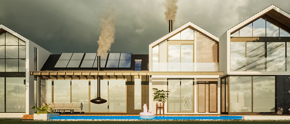 This off the grid project uses Autoclaved Aerated Concrete, also known as AAC, a lightweight, high-insulating and durable brick alternate; PV electricity production and Green Architecture principles.